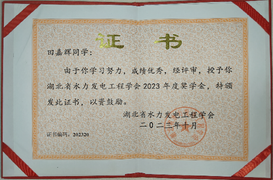 学生连续多年获湖北省水力发电工程学会优秀学生奖学金