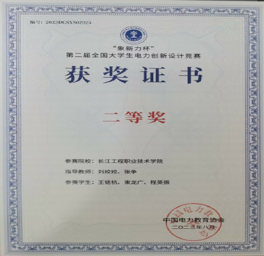 获全国大学生电力创新设计竞赛二等奖