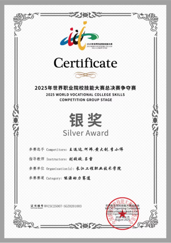 获2025年世界职业院校技能大赛银奖